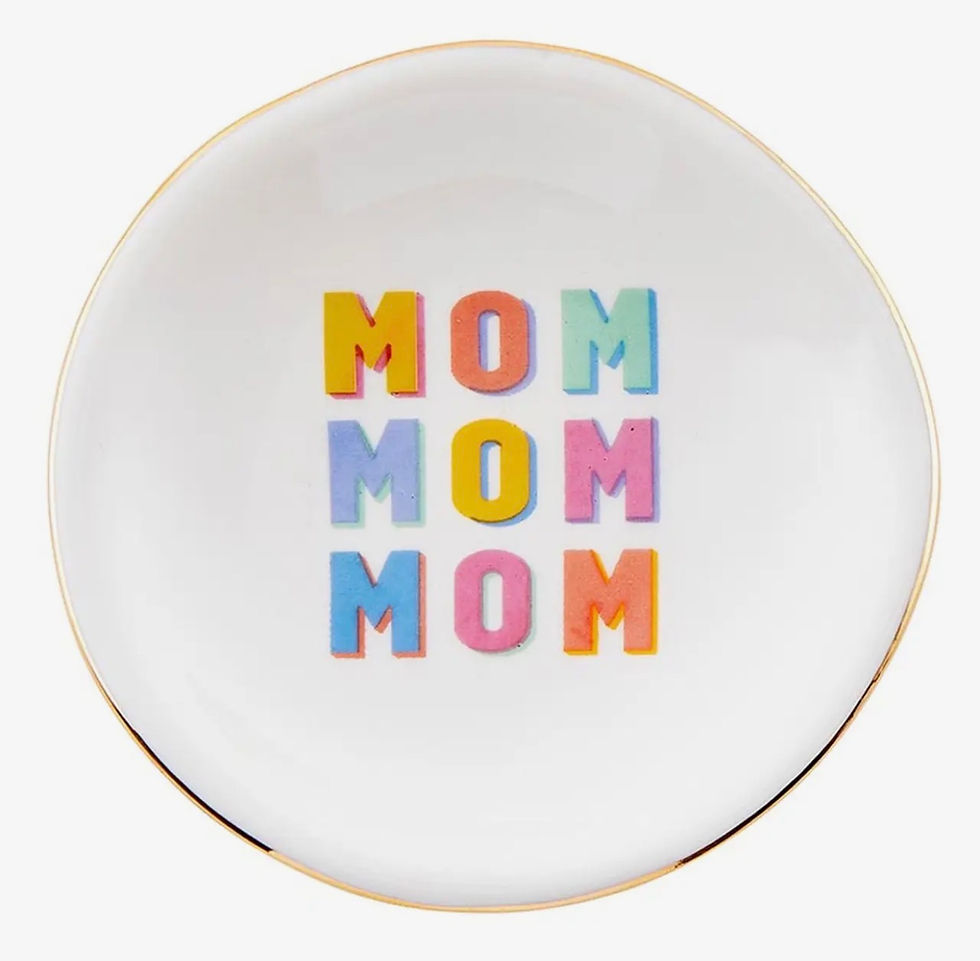 Mom tray includes circular stone earrings.